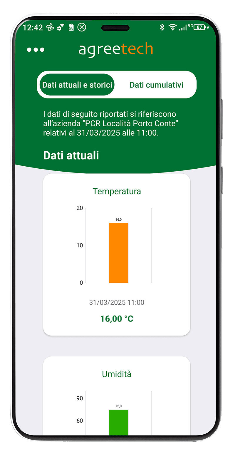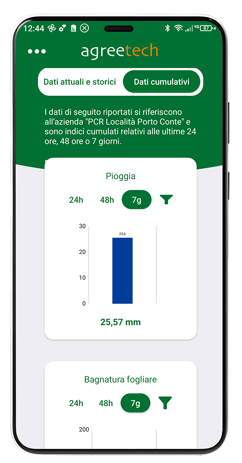 Accedi a dati micro-climatici storici, attuali e previsionali, sempre affidabili e costantemente aggiornati (sensori, satelliti e previsioni ad alta risoluzione) per ottimizzare le decisioni agronomiche in ogni campo agricolo migliorando resa, sostenibilità e gestione delle risorse.