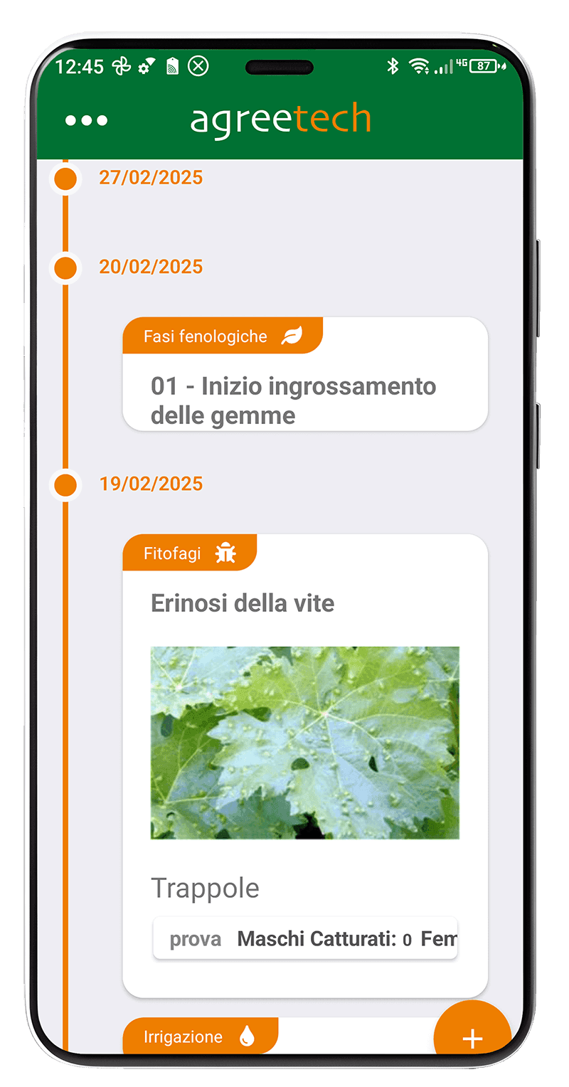 Proteggi le tue colture con soluzioni integrate di monitoraggio e previsione di malattie e fitofagi (modelli previsionali DSS, indici satellitari, trappole automatiche con IA). Agisci in prevenzione e con puntualità riducendo i rischi di perdite in annate difficili e imprevedibili.
