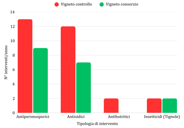 - Totale: il numero complessivo di interventi coincide in entrambi i casi con quelli antiperonosporici.