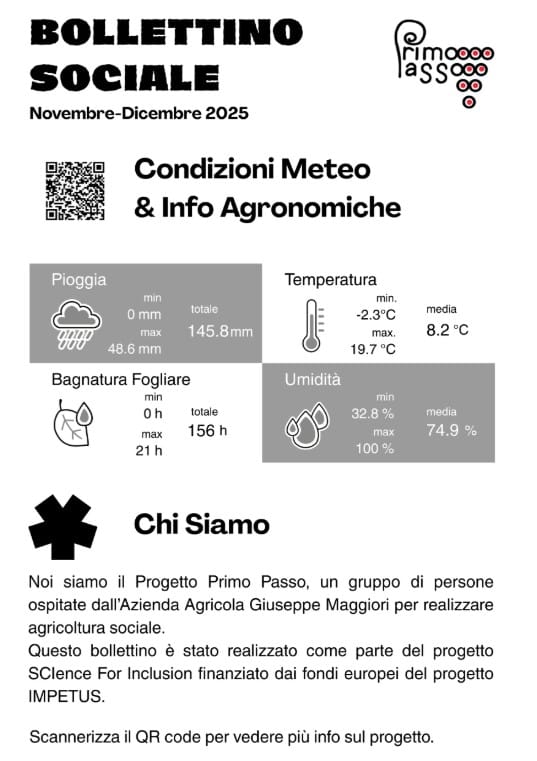 Quando si parla di Agricoltura di Precisione il primo strumento che viene in mente è spesso la stazione metereologica. Ma cosa succede quando la tecnologia 4Agri non si limita a inviare dati a un server, ma diventa il fulcro di un processo comunitario di apprendimento, inclusione e supporto alle decisioni? Nel progetto SCI-FI(T), SCIence For Inclusion Two, finanziato dal programma IMPETUS – Citizen Science Accelerator, nell’ambito di Horizon Europe le stazioni meteo installate all’interno di Primopasso, un percorso di agricoltura sociale attivo presso l’Azienda Agricola Giuseppe Maggiori a Colloredo di Monte Albano (UD), non sono “solo” sensori: sono aule all’aperto, strumenti di empowerment e nodi di una rete che trasforma dati climatici locali in bollettini comprensibili e azioni concrete. Questo articolo fa un focus tecnico e sociale sull’infrastruttura di monitoraggio 4agri al cuore del progetto, mostrando come la tecnologia più avanzata trovi il suo massimo valore quando viene messa nelle mani (e nelle teste) di una comunità coesa.